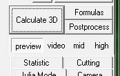 Ok, I'll get to colouring and lighting in the next blogpost. For now though, let's just save your fractal for future access. The first thing you need to do is click on the "View to main" button, in the top left corner. Then you go back to your the main window, make sure you have "Preview" chosen, and click on "Calculate 3D":