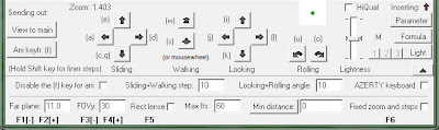 - Then, the 4 "Sliding" buttons: The best I can do to explain these for now is to say that it's like you're side-stepping and turning a little, in whichever direction you click. You'll notice that the zoom is affected when clicking on them. For me, the best thing about them is using them with the Looking buttons, to rotate the fractal and "look around corners".