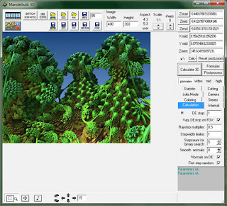 Next, we play around with the different little buttons and sliders :) ... I tried sliding the 4 "col. start" and "col. end" sliders, but the results weren't very exciting. Of course, I don't quite understand what's going on yet :P and perhaps with other fractal formulas and/or colour set-ups, depending on the area you're focusing on, this might work differently. Experiment with your own pic to see.