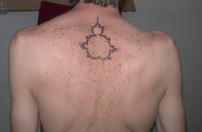 So why did I get a tattoo of the Mandelbrot? ... Well, the way I see it, it represents the essential, underlying nature of the universe. That's why. ... Chaos. Infinity. The hidden language (and beauty) of mathematics that exists not only in our Euclidean man-made world of technology and architecture, but also (as fractal geometry is proving to us) everywhere in the natural world of trees, rivers, organic bodies and galaxies.